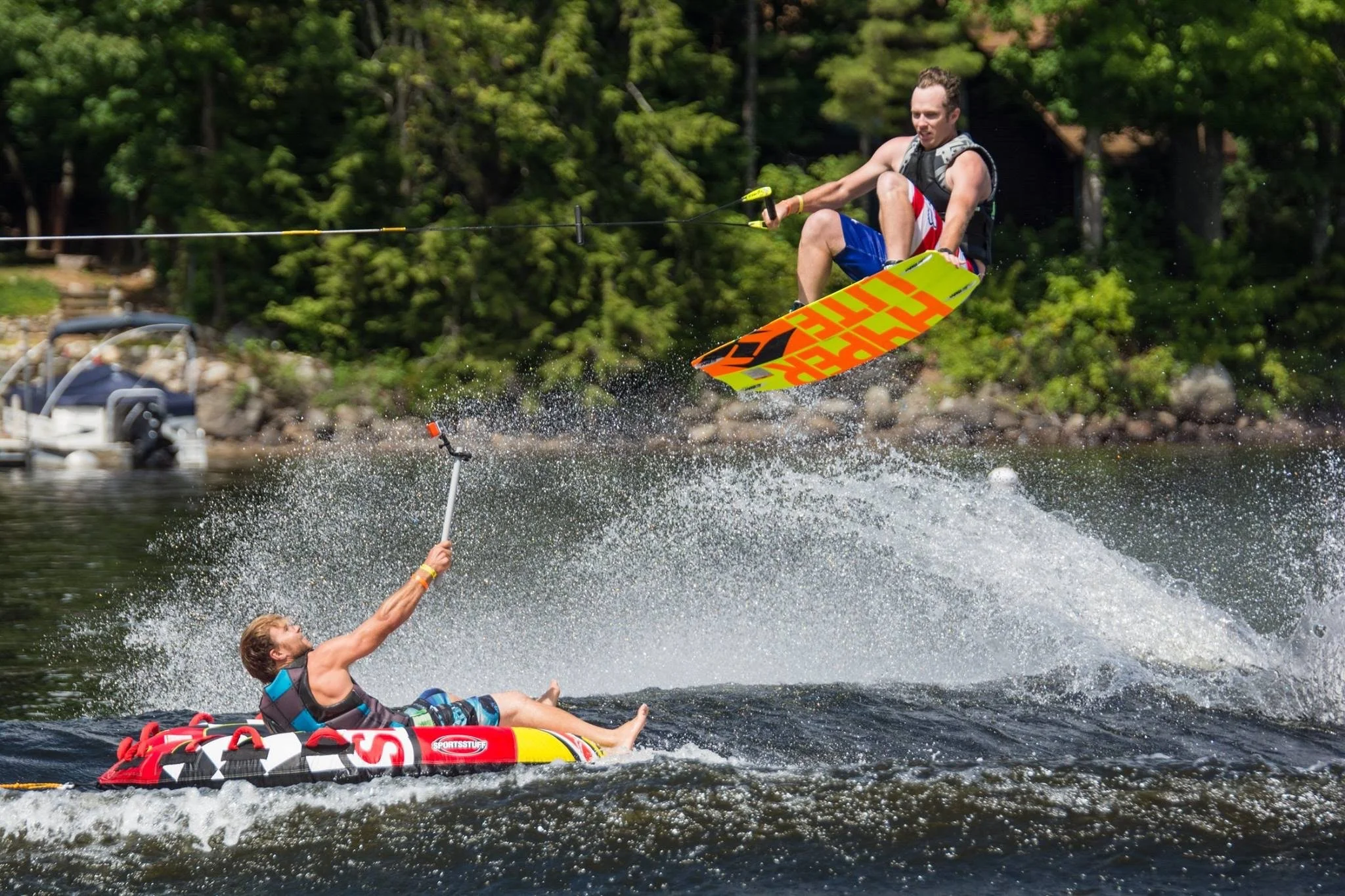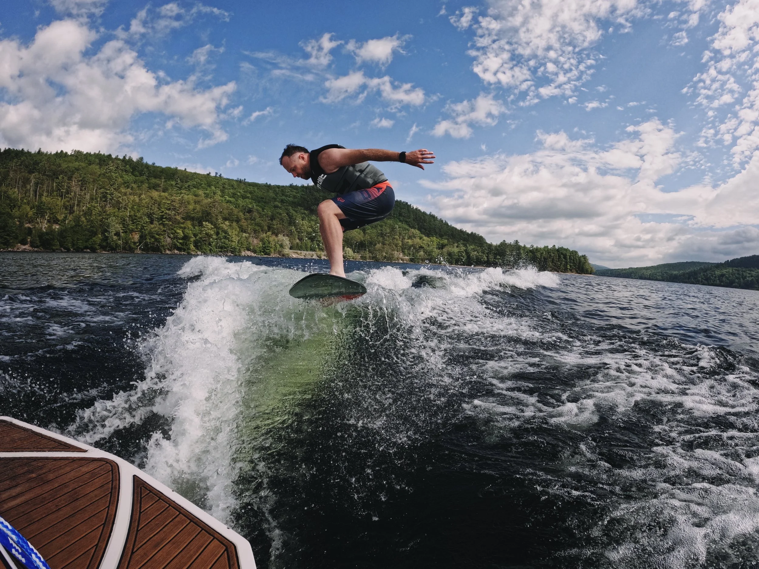 Tommy Sewall is a lifelong water sports enthusiast who’s been behind a boat practically every summer since he was old enough to stand on a pair of waterskis. Today, he still rips on wakeboard, wakesurf, foil, and occasionally hops back on the slalom ski for old times’ sake. For over 20 years, he’s been teaching folks how to wakeboard, waterski, and surf right here on Schroon Lake — some summers it was literally his full-time job.
